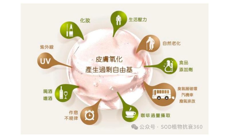 如果自由基在人体内产生,如果不及时清除,会使皮肤迅速老化,失去弹性,出现各种斑点,抵抗力下降,内分泌紊乱,各种疾病接近人体。现在人们吃的蔬菜有很多农药成分洗不干净,路上的废气、灰尘、生活压力和空气污染都会危害我们的健康,所以在我们服用SOD的基础上,这些危害健康的东西会远离我们。