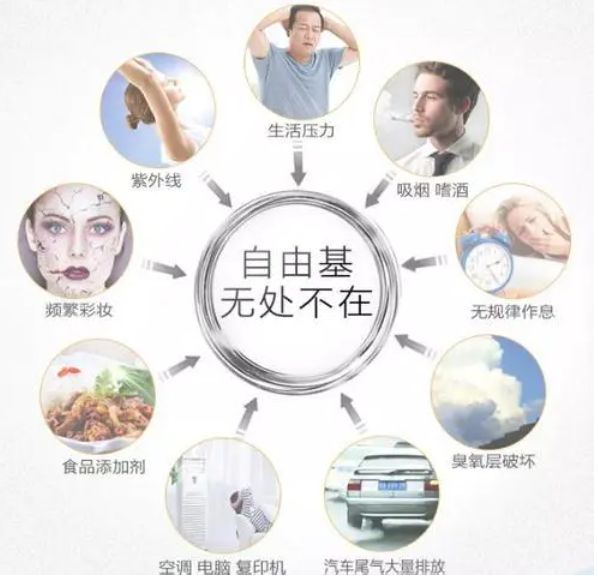 自由基是人体产生的有毒物质的来源,是人类健康的shashou,具有很强的破坏性。自由基在人体内的过度聚集可以加速细胞的衰老,降低身体的免疫力,导致各种疾病。数据显示,98%的人体疾病是由自由基引起的。如老年斑、皱纹、免疫力下降、肿瘤、炎症、血栓形成、关节炎、心脑血管疾病等100多种。