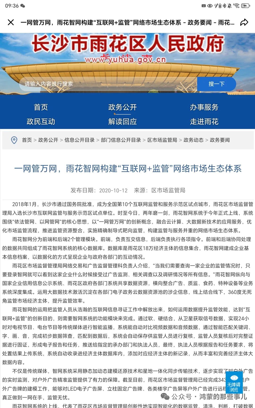 湖南长沙雨花区市场监督管理局认可 鸿蒙智慧监测监管系统(鸿蒙智网系统)