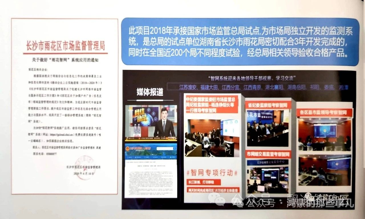 湖南省市场监督管理局、长沙市市场监督管理局、长沙市雨花区、福建三明大田县、湖北枣阳市、河北唐山市等多地市场监督管理局都对该系统表示支持: