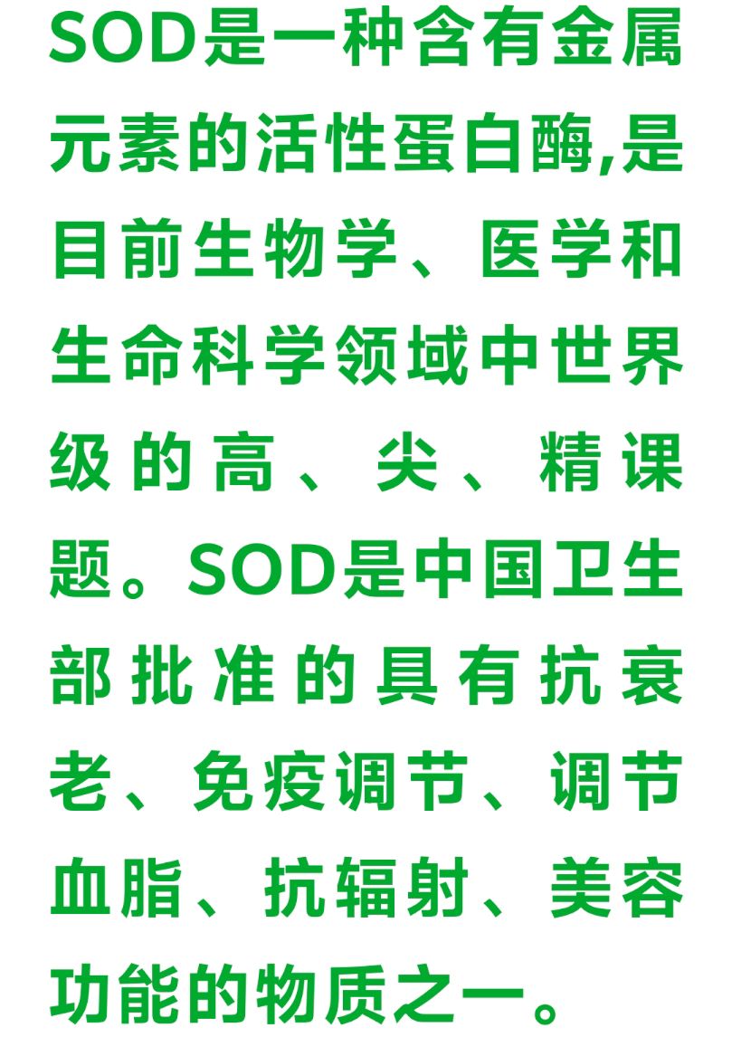 而SOD(超氧化物歧化酶),是人体唯一、专一、高效清除超氧阴离子自由基的核心酶。